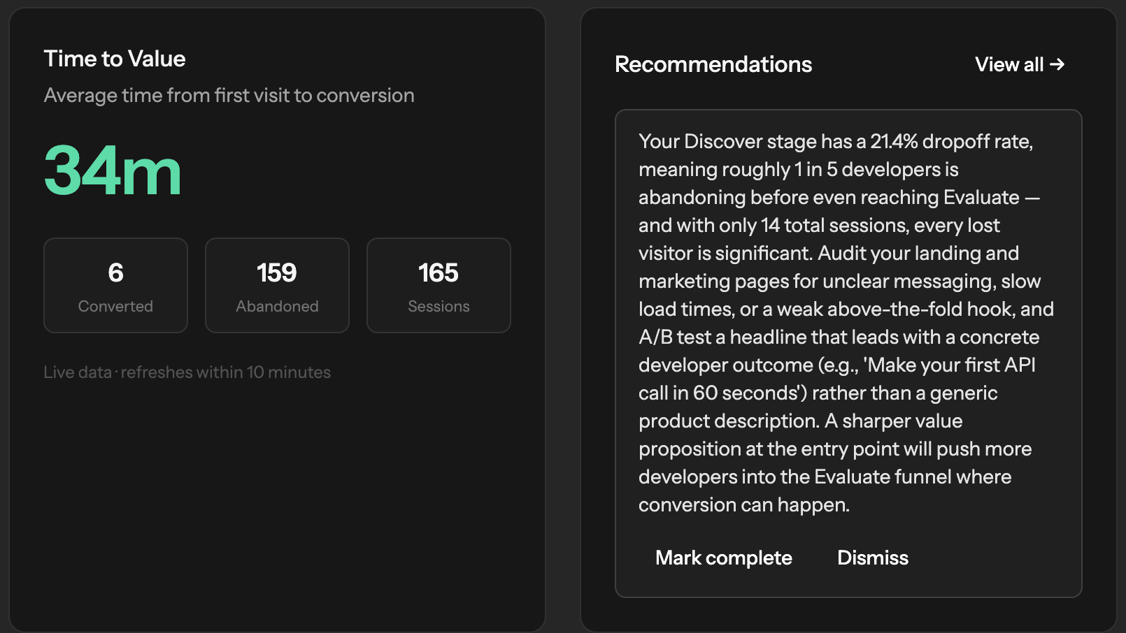 Here's why that matters: developers who don't reach value fast leave fast. And you won't know they were ever close until they're already gone.
